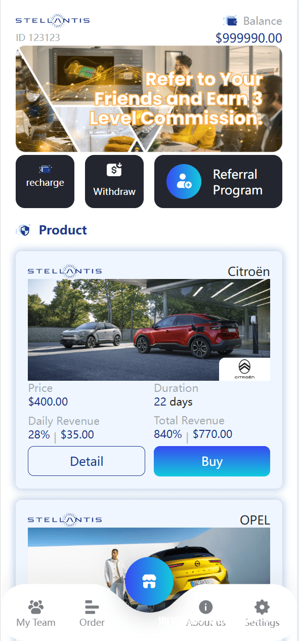 【海外源码】海外新UI汽车产品共享投资理财系统 测试还行 声明:发现搬砖[未登记],代下,共享账号封禁【每个都会记录ip,多ip封禁账号】,使用用途仅限于测试、实验、研究为目的,禁止用于一切商业运营,本团队不承担使用者在使用过程中的任何违法行为负责,所有源码请自测!